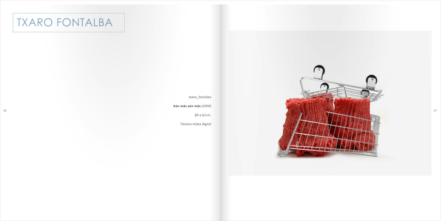 Txaro Fontalba es mujer y de la mujer habla su obra. De la mujer amante, esposa, amiga, de la que trabaja, de la que cuida la casa, de la que compra, de la que cuida de los niños. En su obra tradicional un par de carros de compra han sido fagocitados, devorados por enormes trozos de solomillo y carne picada. Parece que el hecho de ir a la compra la haya desbordado. Los títulos «aún más, aún más» y «más, aún más, aún más, aún más, aún más, aún más, aún más…»