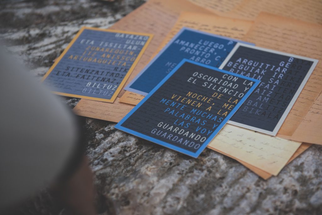 Las cartas de Mendigatxa son el punto de partida de mi propuesta en el proyecto Landarte en la localidad de Vidángoz. A principios del s.XX Mariano Mendigatxa, vecino de Vidángoz, colaboró y mantuvo correspondencia con el lingüista Resurrección Mª de Azkue, en relación al estudio del uskara, dialecto del euskera roncáles, que sufría ya un retroceso irreversible en el Roncal.