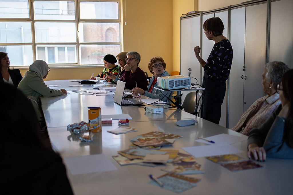 Compartí esta experiencia con un grupo intergeneracional de mujeres, de edades muy diferentes comprendidas entre los 23 y 90 años. Comenzamos conversando en torno a la obra “Al aire de su vuelo”, invitando a las participantes a revisar el pernicioso peso que el ideal tiene o ha tenido en nuestras vidas. Decir “basta” al mito de la madre perfecta.