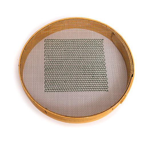 En la pieza Sin título (1995), la artista utiliza el cedazo como elemento circular, estableciendo una relación entre círculo y cuadrado. A veces, el círculo es contenido por el cuadrado; en otras, el cuadrado se llena de círculos, como en el conjunto de obras que evocan los mosaicos. Esta exploración parece acercarse a la idea de la cuadratura del círculo, trasladando esta cuestión geométrica al ámbito de lo cotidiano e íntimo.