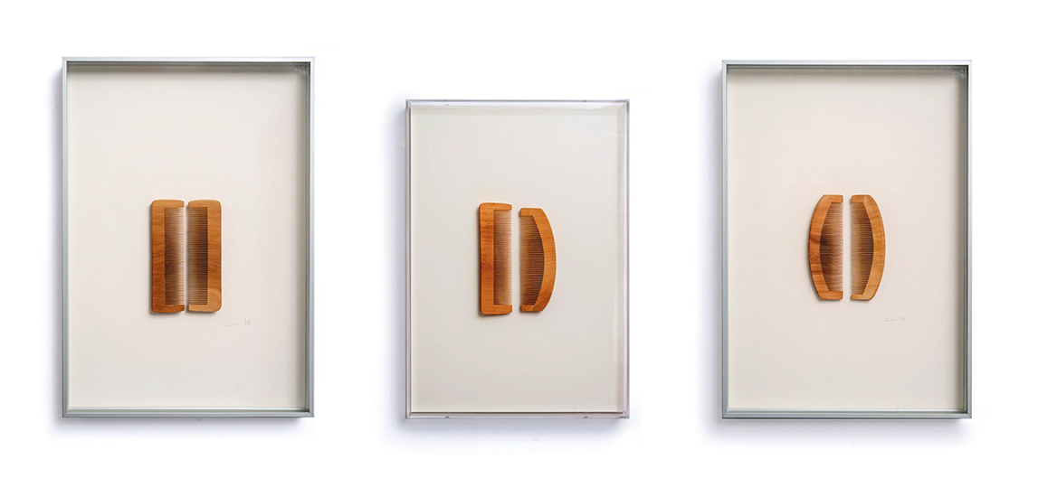 En Zu ta ni / Tú y yo, (2015), la artista descontextualiza varios modelos de peines, jugando a cambiar repentinamente de una dirección de significado a otra. Este objeto doméstico, que nos acompaña en nuestra vida cotidiana, adquiere evocaciones sentimentales y sutiles referidas a las diferencias de género y orientación sexual. Los objetos nos conectan, nos orientan y portan valores afectivos y simbólicos. Los objetos están entre los cuerpos y nos vinculan con otros cuerpos. Encuentro a Mertxe Sueskun más emparentada con la poesía visual, la experimentación y el juego con lo cotidiano de Joan Brossa, que con el gesto descontextualizador de Duchamp. Como en Brossa, el objeto descarga poética y es receptáculo singular de memoria afectiva.
