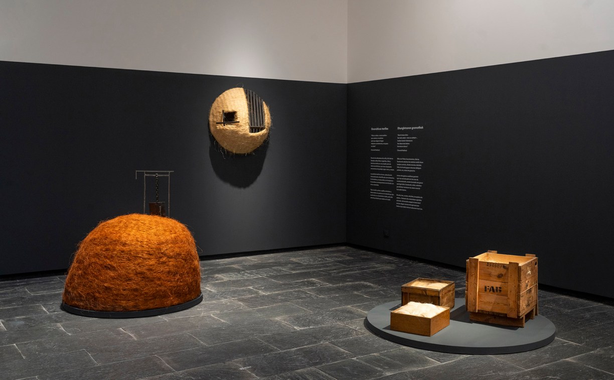 Desde 1988 y hasta la actualidad, Mertxe Sueskun emplea fibras vegetales, telas y técnicas textiles en una extensa serie de obras escultóricas. Estas creaciones traen al presente recuerdos de su infancia, evocaciones de la casa, el agua y la naturaleza.