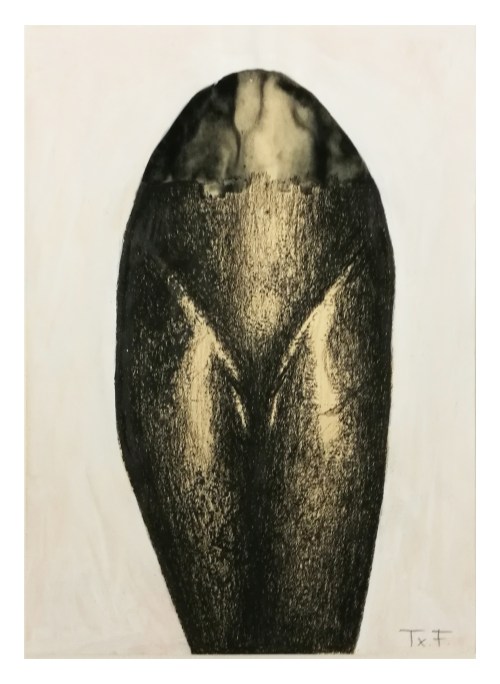 «…la serie de dibujos Bestiario de amor en los que piernas, formas bulbosas, pliegues vaginales y otros bultos indefinidos parecen flotar sobre un fondo de suave tonalidad sin llegar a modelar un cuerpo entero, dibujando, eso sí, en algún caso la redondez de un corazón solitario.