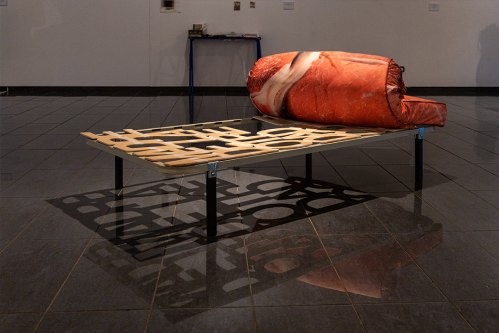 Impresión digital sobre tela, DM, acrílico, fibra textil, somier modificado.