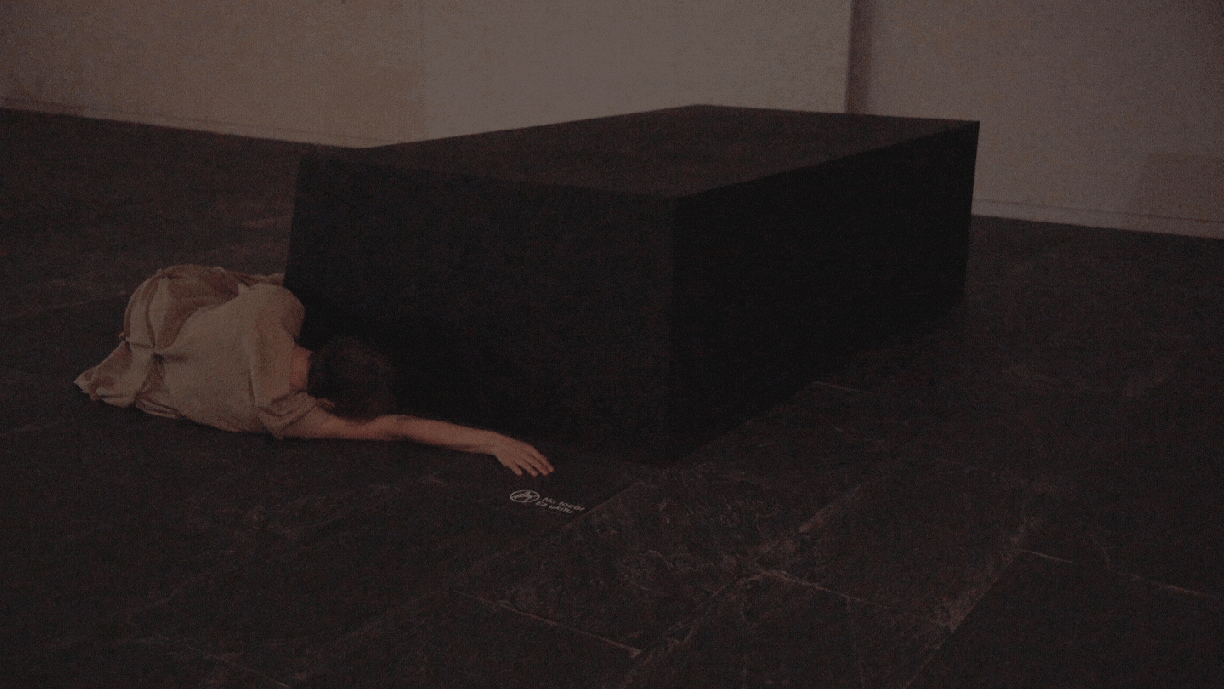 El pasado 27 de mayo, noche de luna llena, pernocté en el Museo de Navarra. Ejecuté el ritual íntimo del sueño delante de las cámaras de vigilancia. Me tumbé al lado de la escultura «Menhir» de Elena Asins, con la que «jugué al escondite» en posición horizontal. Hice rotar mi cuerpo alrededor de la escultura, jugando a aparecer y esconder medio cuerpo en cada esquina.