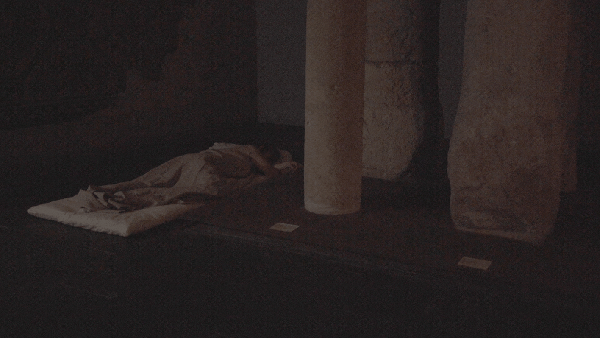 El pasado 27 de mayo, noche de luna llena, pernocté en el Museo de Navarra. Ejecuté el ritual íntimo del sueño delante de las cámaras de vigilancia. Me tumbé a lado de las cuatro columnas hispano-romanas de Eslava, Santacara y Castilliscar, en silencio, y dormí con junto a ellas.